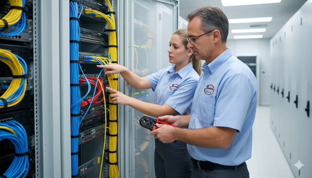 En la era digital, la conectividad es la base del crecimiento y éxito de cualquier empresa. Una red confiable, segura y bien diseñada garantiza la continuidad operativa, la eficiencia en los procesos y la comunicación efectiva entre equipos y sucursales. En nuestra empresa, ponemos a tu disposición un servicio técnico especializado en redes, cableado estructurado, sites, data centers y centros de comunicaciones, diseñado para cubrir todas tus necesidades en instalación, mantenimiento y reparación.
